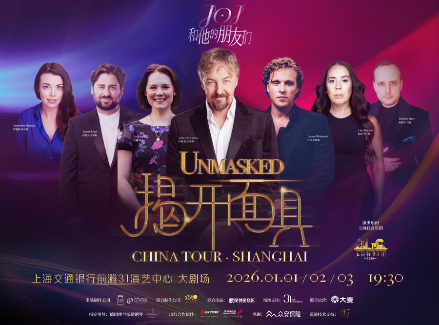 “再次来到中国,我的心情非常激动。”《Unmasked揭开面具——约翰·欧文-琼斯和他的朋友们》音乐会中国巡演12月27日在Rock Bund众安大楼露台举办发布会。知名音乐剧演员约翰·欧文-琼斯谈起2026年1月1日将在交通银行前滩31演艺中心举行的巡演全国首演,“中国观众给予我的热情与真诚,让我在舞台上感到无比自由。我想用最真实的声音分享更多关于我以及音乐本身的故事。”